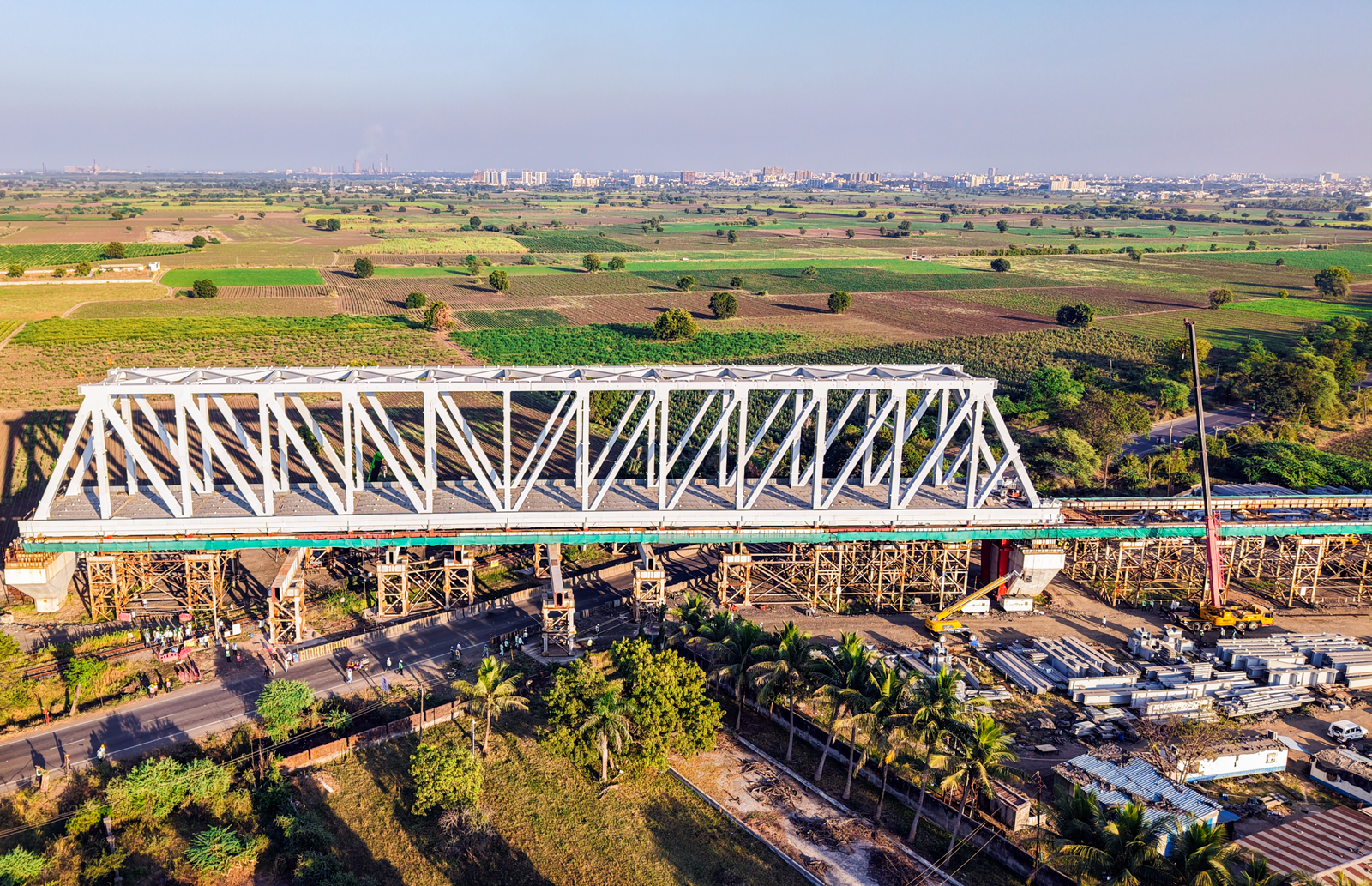 The Mumbai- Ahmedabad High Speed Rail Project progressed as National High Speed Rail Corporation (NHSRCL) has successfully completed the launching of 130 m span of a 230 m (130 +100) long steel bridge over National Highway-64 and Bharuch Dahej freight line of Indian Railway tracks near Kanthariya village, Bharuch district, Gujarat.