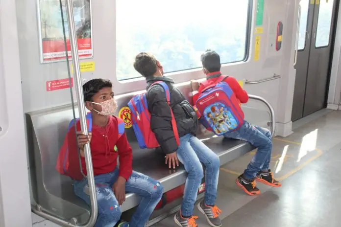 LUCKNOW (Metro Rail News): A group of around 30 children from Vigyan Foundation today took Lucknow Metro’s joy ride along with their teachers and staff of Vigyan Foundation. Enroute their journey, the enthusiastic children couldn’t take their eyes off the bird’s eye view of the city that the metro ride offered.