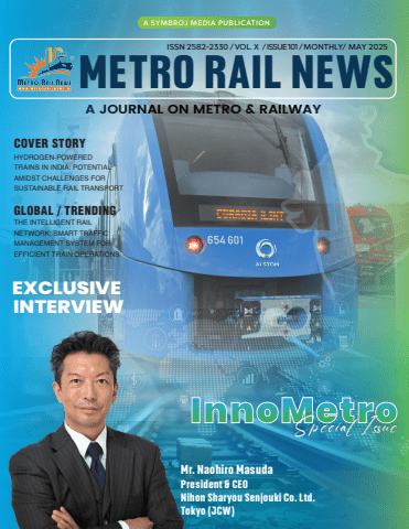 A JOURNAL ON METRO & RAILWAYzzril delenit augue duis dolore te feugait nulla facilisi.Lorem ipsum dolor sit amet, cons ectetuer adipiscing elit, sed diam nonummy nibh euismod tincidunt ut laordolore magna aliquam erat volutpat. Ut wisi enim ad minim veniam, quis nostrud exerci tation ullamcorpersuscipit lobortis nisl ut aliquip ex ea commodo consequat.Lorem ipsum dolor sit amet, consectetuer adipiscing elit, sed diam nonummy nibh euismod tincidunt ut laoreet dolore magna aliquam erat volutpat. Ut wisi enim ad minim veniam, quis nostrud exerci tation ullamcorper suscipit lobortis nisl ut aliquip ex ea commodo consequat. Duis autem vel eum iriure dolor in hendrerit in vulputate velit esse molestie consequat, vel illum dolore eu feugiat nulla facilisis at vero eros et COVER STORYHYDROGEN-POWERED TRAINS IN INDIA: POTENTIAL AMIDST CHALLENGES FOR SUSTAINABLE RAIL TRANSPORTGLOBAL / TRENDINGTHE INTELLIGENT RAIL NETWORK: SMART TRAFFIC MANAGEMENT SYSTEM FOR EFFICIENT TRAIN OPERATIONSEXCLUSIVE INTERVIEWA SYMBROJ MEDIA PUBLICATIONMETRO RAIL NEWSISSN 2582-2330/VOL. X/ ISSUE 101 / MONTHLY/ MAY 2025Mr. Naohiro MasudaPresident & CEO Nihon Sharyou Senjouki Co. Ltd. Tokyo (JCW)InnoMetroSpecial I%u0016ue