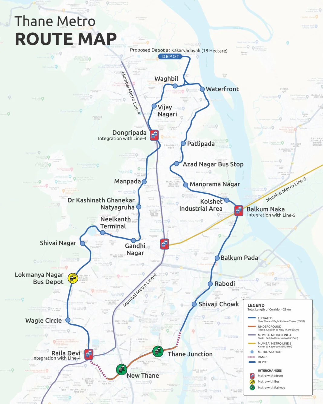 1. Multi-Modal Integration: The metro will be integrated with the Mumbai Metro Line 4 (Wadala–Kasarvadavali) and Line 5 (Thane–Bhiwandi–Kalyan), as well as the existing suburban railway network at Thane Station. This multimodal integration will create a comprehensive transit system, improving regional connectivity.